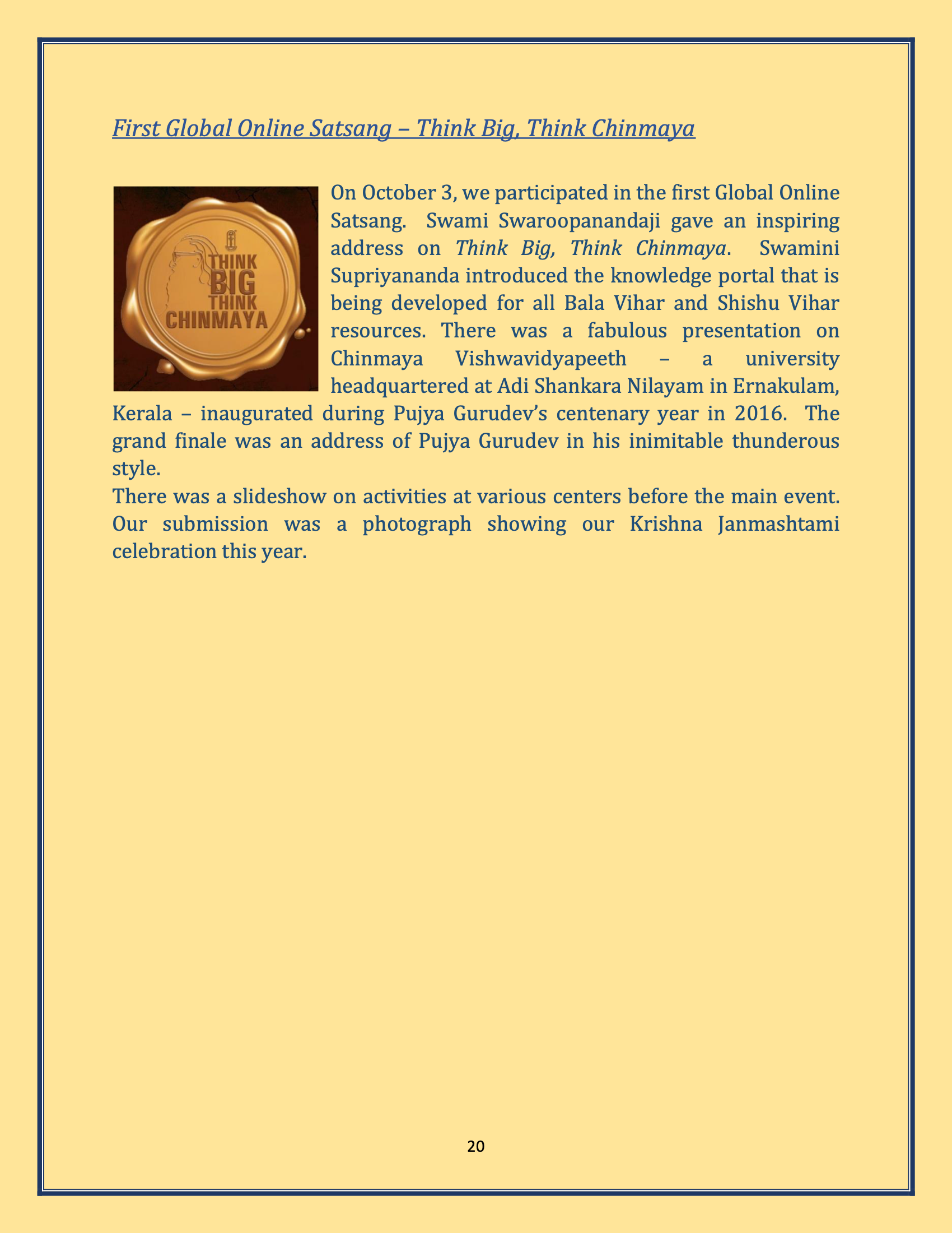 Jnana Yagna events